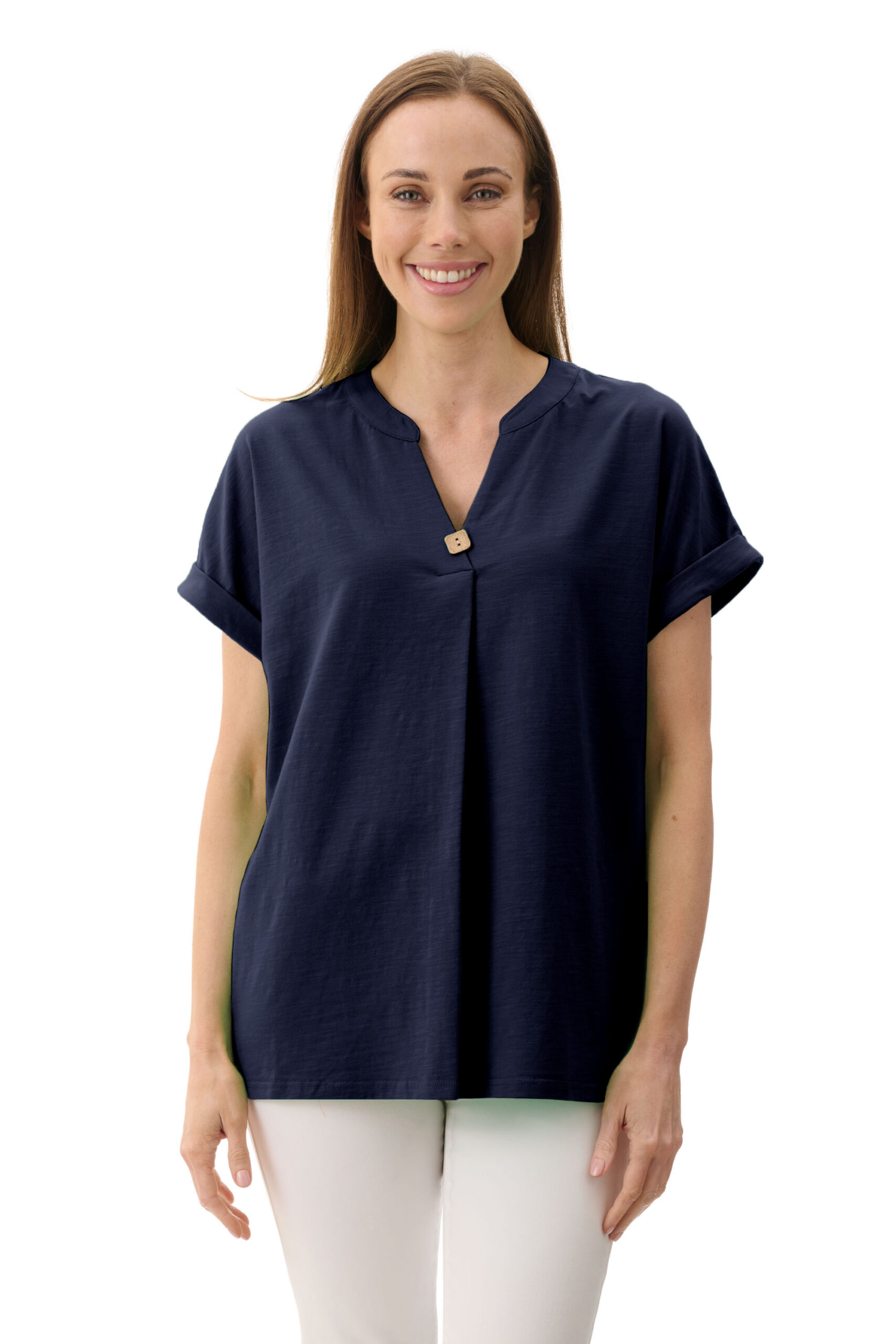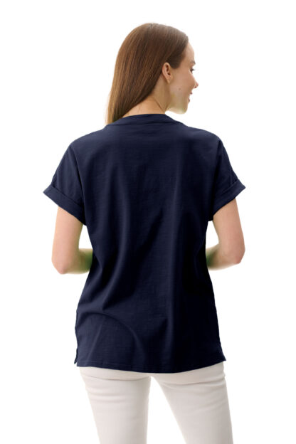 Giovoni V neck button front top in navy