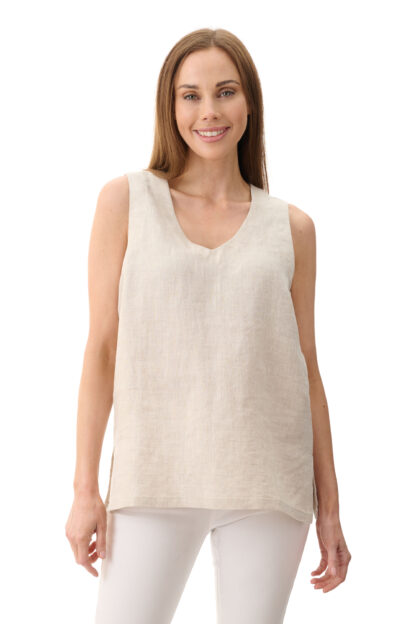 Givoni Linen Sleeveless top in Wheat colourCall us (08) 8523 4161 to confirm availability, price and your size is in stock.