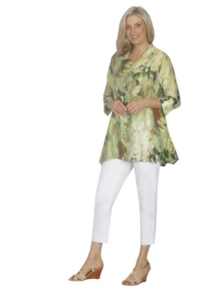 Multi coloured splice shirt in green and rust tones