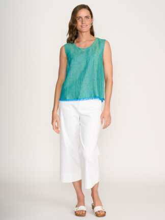 Foil Shell Linen fringed hem top in spearmint or hot pink